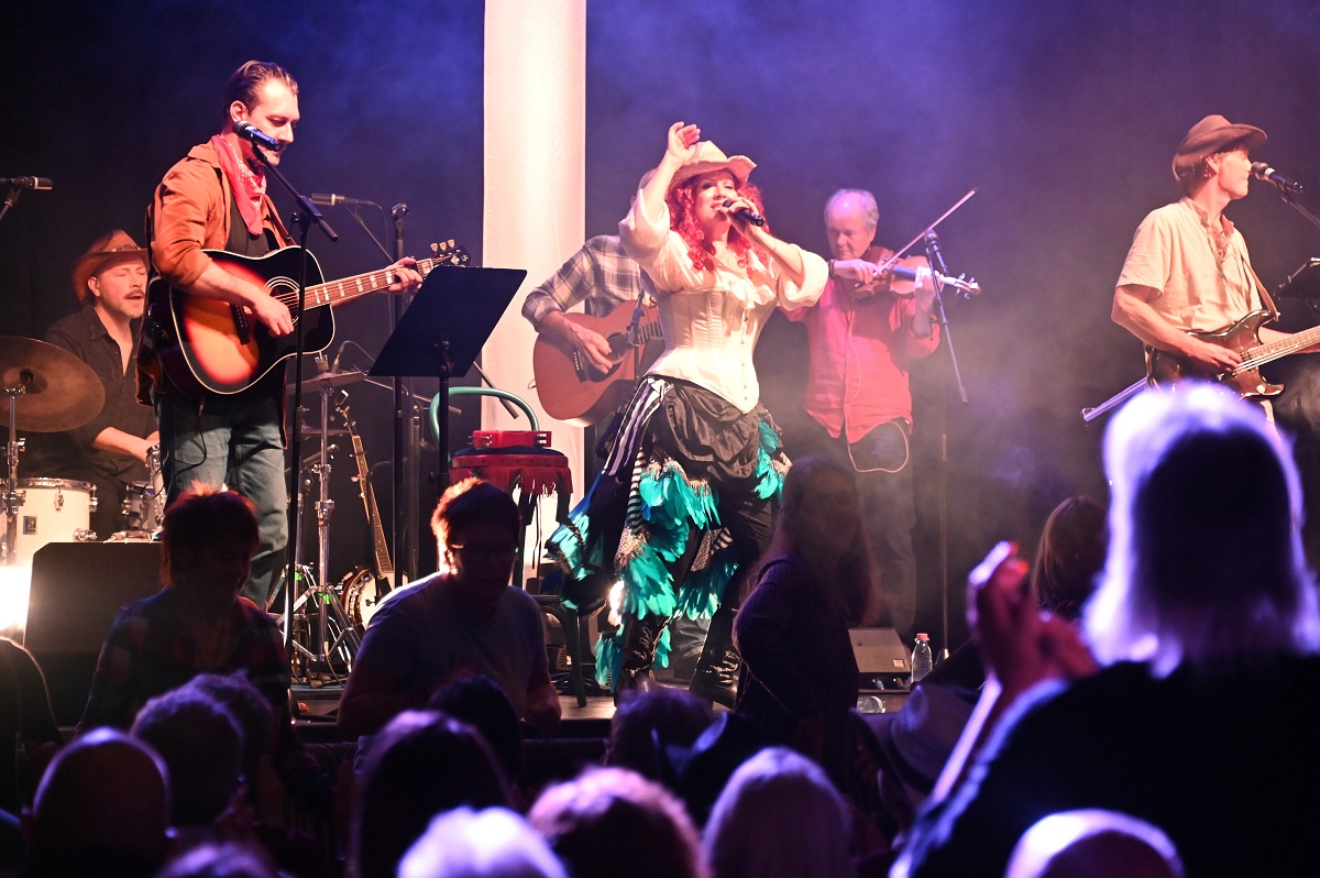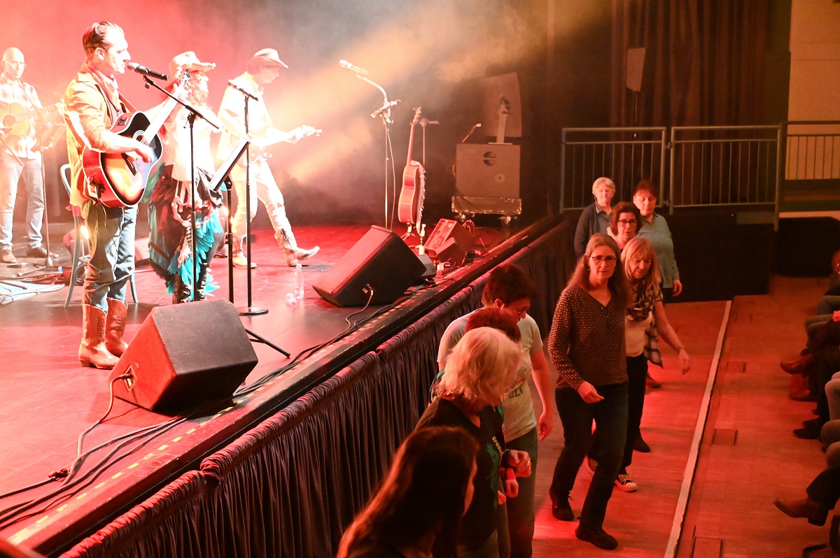 Die Gäste, zumeist echte Country-Fans, sangen und klatschten nicht nur mit, sondern griffen selbst „die Zügel in die Hand“: Am Rande der Sitzplätze führten sie zur Musik der Country-Band mehrere Linedances auf – direkt vor und neben der Bühne. Klassiker wie „Ring of Fire“, „Jolene“ oder „On the Road Again“ lösten Begeisterungswellen aus, während die Musikerinnen und Musiker eine Atmosphäre schufen, die an die Abende im legendären Honky-Tonk-District von Nashville erinnerte. „Eine derartige Country-Show hatten wir zum ersten Mal im Programm“, sagte Elke Reede von der Kulturgemeinschaft Beverungen.