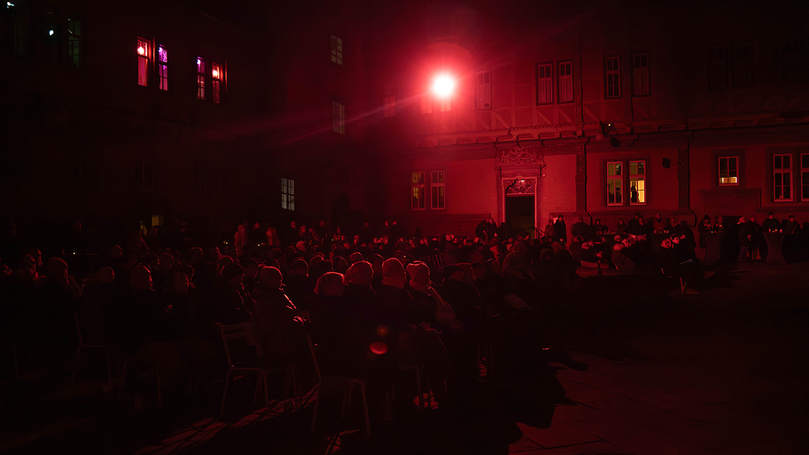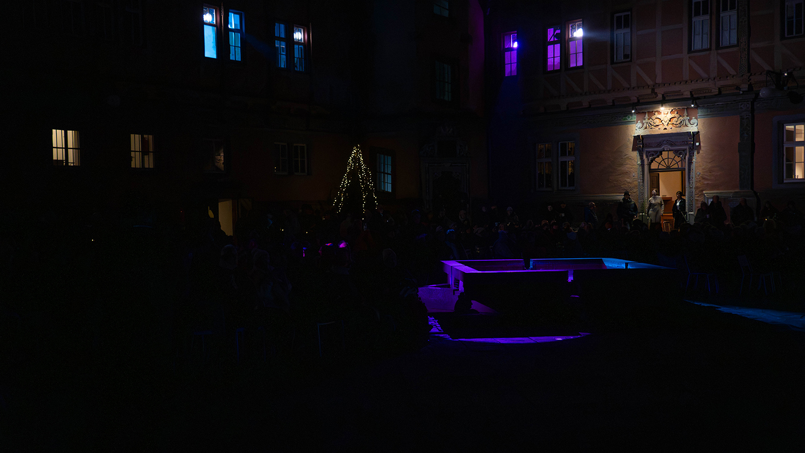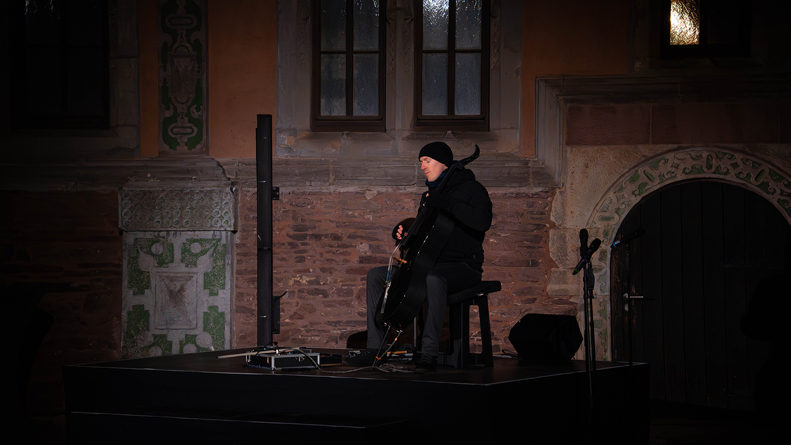 Für die musikalische Gestaltung zeichnete Matthias Marggraff verantwortlich, der unter seinem Namen „Ultracello“ bekannt ist. Seine Kompositionen verbanden sich eng mit den visuellen Elementen und verstärkten die Wirkung der Inszenierung. Trotz der winterlichen Temperaturen verfolgten die Besucherinnen und Besucher die Darbietung aufmerksam und reagierten mit anhaltendem Beifall.