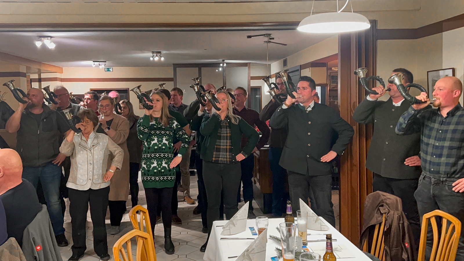 Neben den offiziellen Auftritten kam auch die interne Geselligkeit nicht zu kurz. Gemeinsame Übungsabende im Sommer an Jagdhütten, Polterabende von Mitgliedern, die traditionelle Bläserjagd sowie das Kartoffelbraten gehörten ebenso zum Jahresprogramm wie ein gemeinsamer Besuch im Schießkino. Erstmals fand zudem eine Grünkohlwanderung statt, die auch für das laufende Jahr wieder vorgesehen ist.