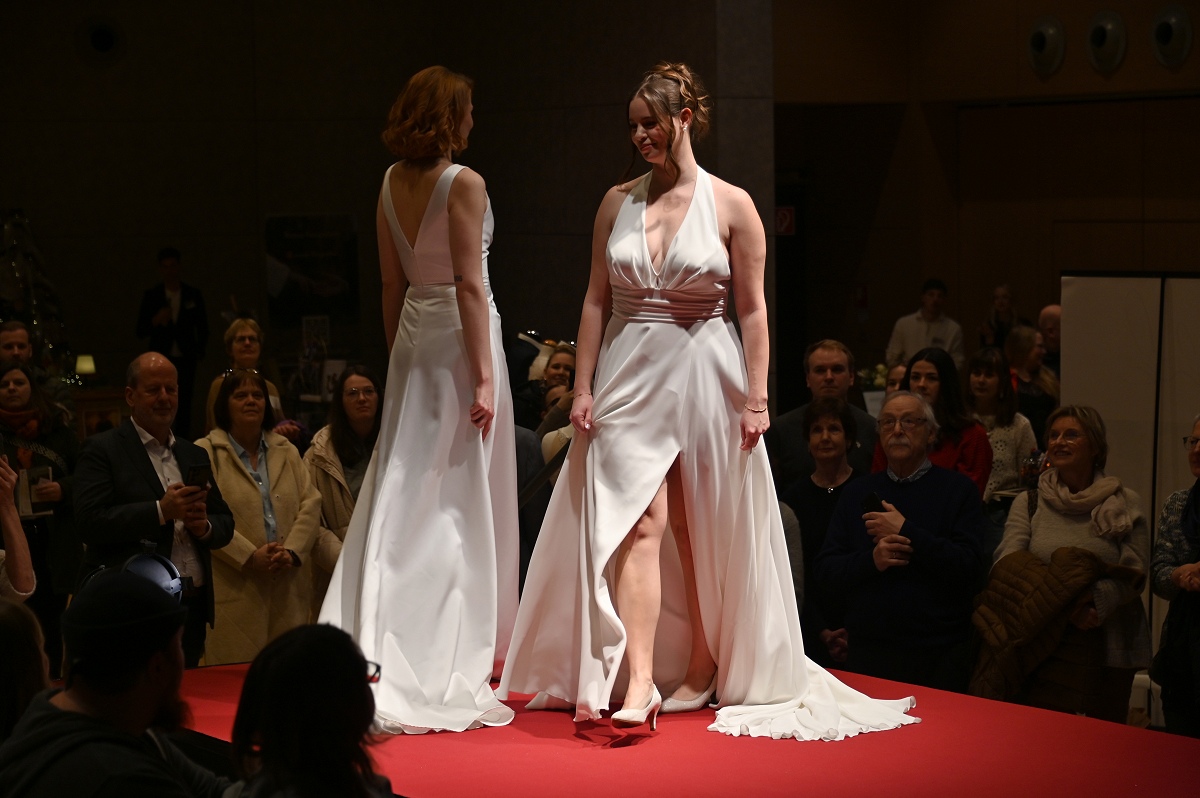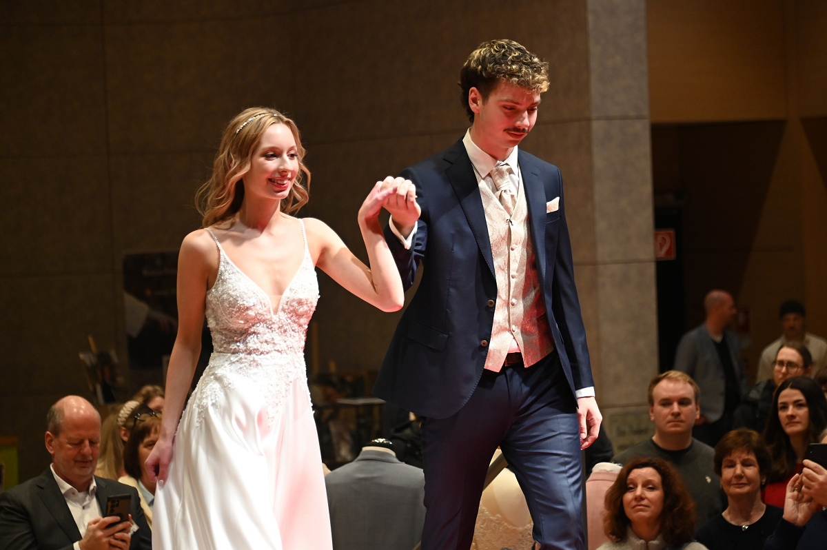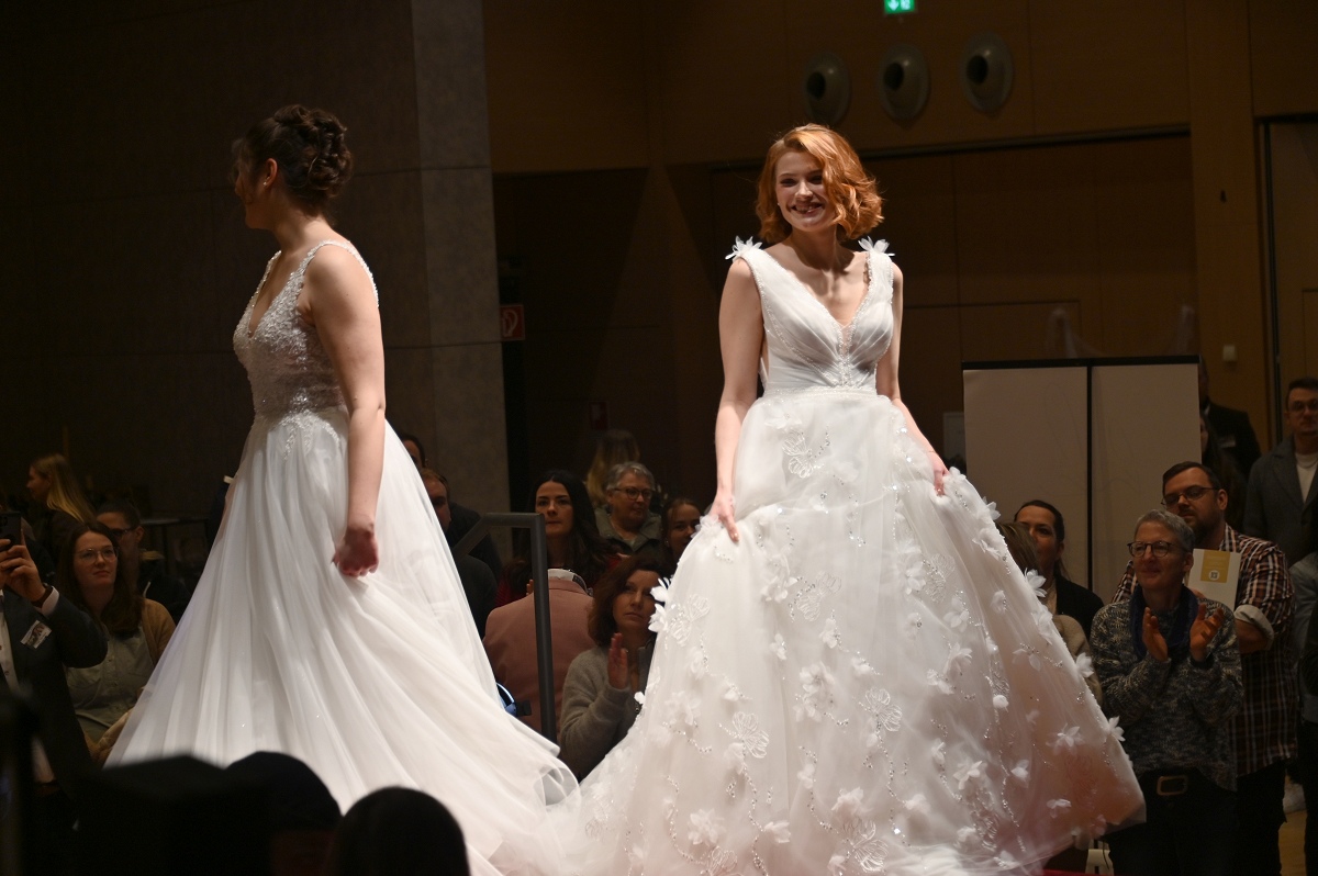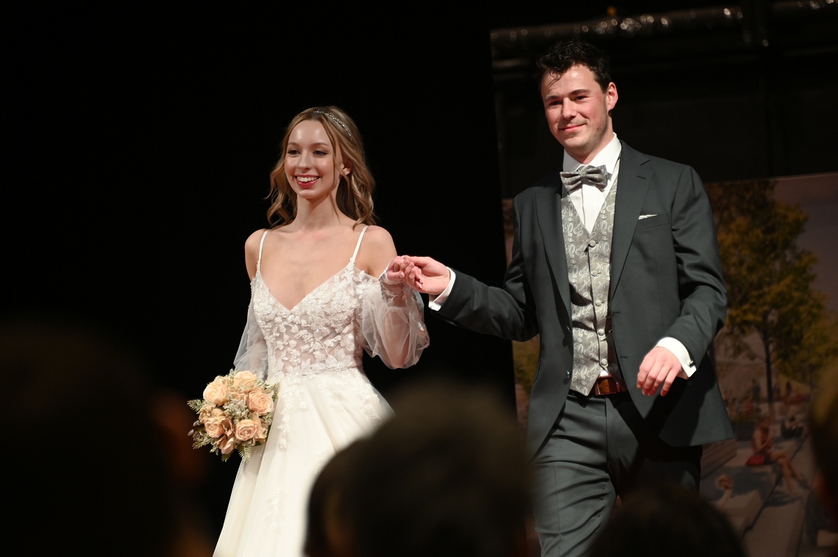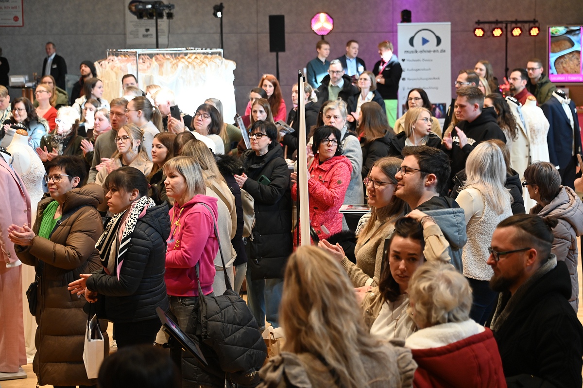 Höxter (TKu). Von der ersten Idee bis zum letzten Detail: Wer sich mitten in den Hochzeitsvorbereitungen befindet und Inspirationen suchte, insbesondere was die neuesten Trends betrifft, der war am Sonntag in der Residenz-Stadthalle in Höxter genau richtig. Bei der 30. Höxteraner Hochzeitsmesse, ausgerichtet von der Boutique Tinas Moden, drehte sich wieder einmal alles um den wohl schönsten Tag im Leben eines Paares. Die Messe bot eine gelungene Mischung aus Information, Inspiration und persönlicher Beratung. Drei Modenschauen, bei denen die aktuellen Hochzeitskollektionen 2026 vorgestellt wurden, waren die Höhepunkte der Messe, die etwa 500 Besucherinnen und Besucher angezogen hat. Zeitlose und wandelbare Designs seien aktuell sehr gefragt. Bettina Hörnlein von Tinas Moden erläuterte, dass aktuell hauptsächlich abnehmbare Röcke und Schleppen im Trend lägen, um den Übergang von Trauung zu Feier flexibel zu gestalten. Ergänzt würden diese durch integrierte Taschen, Beinschlitze in weich fließenden Chiffonröcken, schlichte Satinröcke oder weit geschnittene Kleider für den „Prinzessinnenmoment“. Ein hoher Tragekomfort und der Wohlfühlfaktor spielten bei der Beratung stets eine zentrale Rolle. Auch bei der Mode für den Bräutigam zeigten sich neue Akzente. Moderne Farbtöne setzten frische Impulse, während klassische Modelle, wie in Blau, weiterhin gefragt blieben.