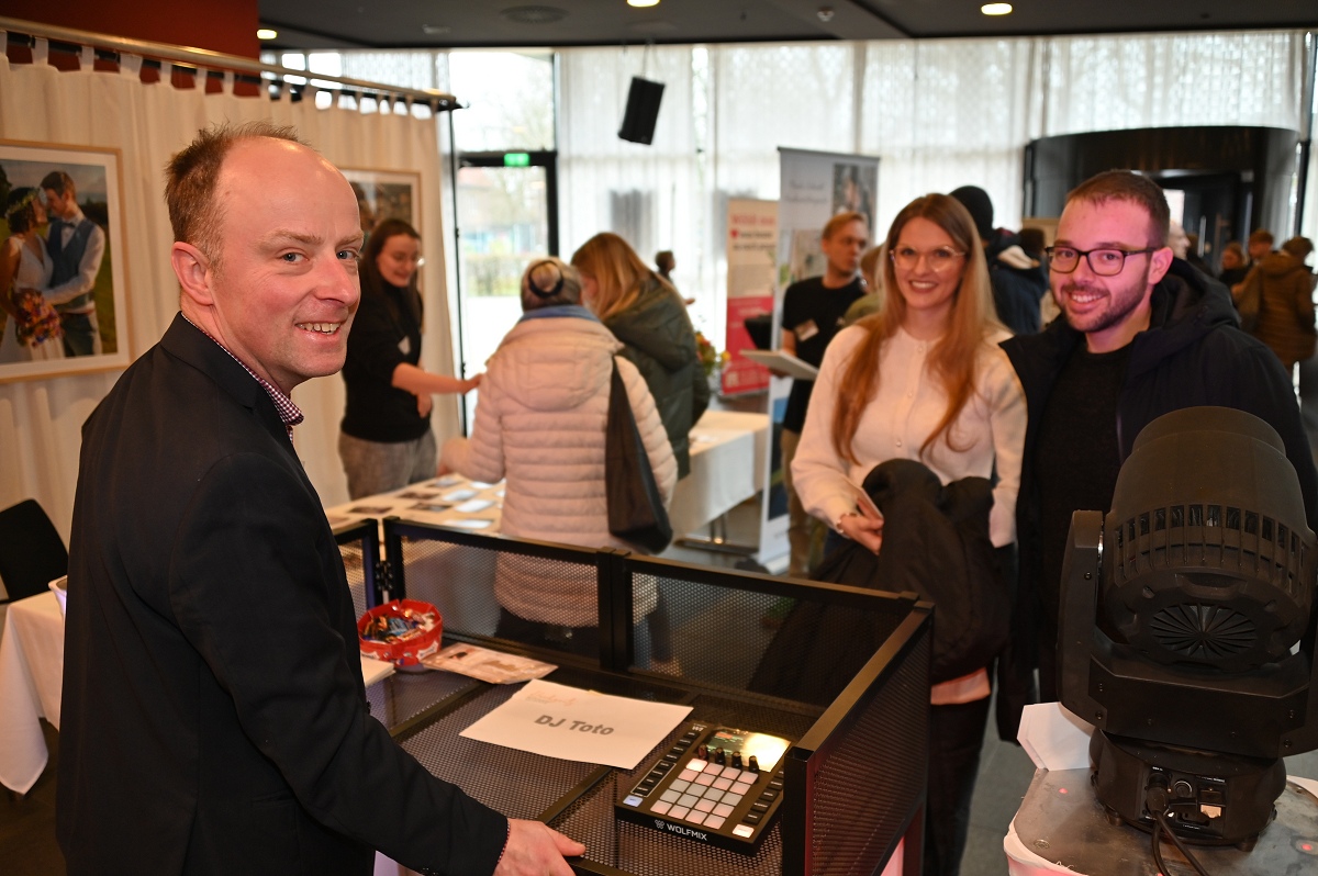 Auch Gastronomie, Konditoreihandwerk, Musik sowie Hochzeitssängerinnen und weitere Dienstleistungen rund um das Feiern waren vertreten. Mit Pfarrer Tim Wendorff und seinem zweiköpfigen Team war auch die Kirche vertreten. Er beriet die Paare nicht nur, sondern sammelte auch deren Meinungen zu ihrer geplanten Hochzeit.