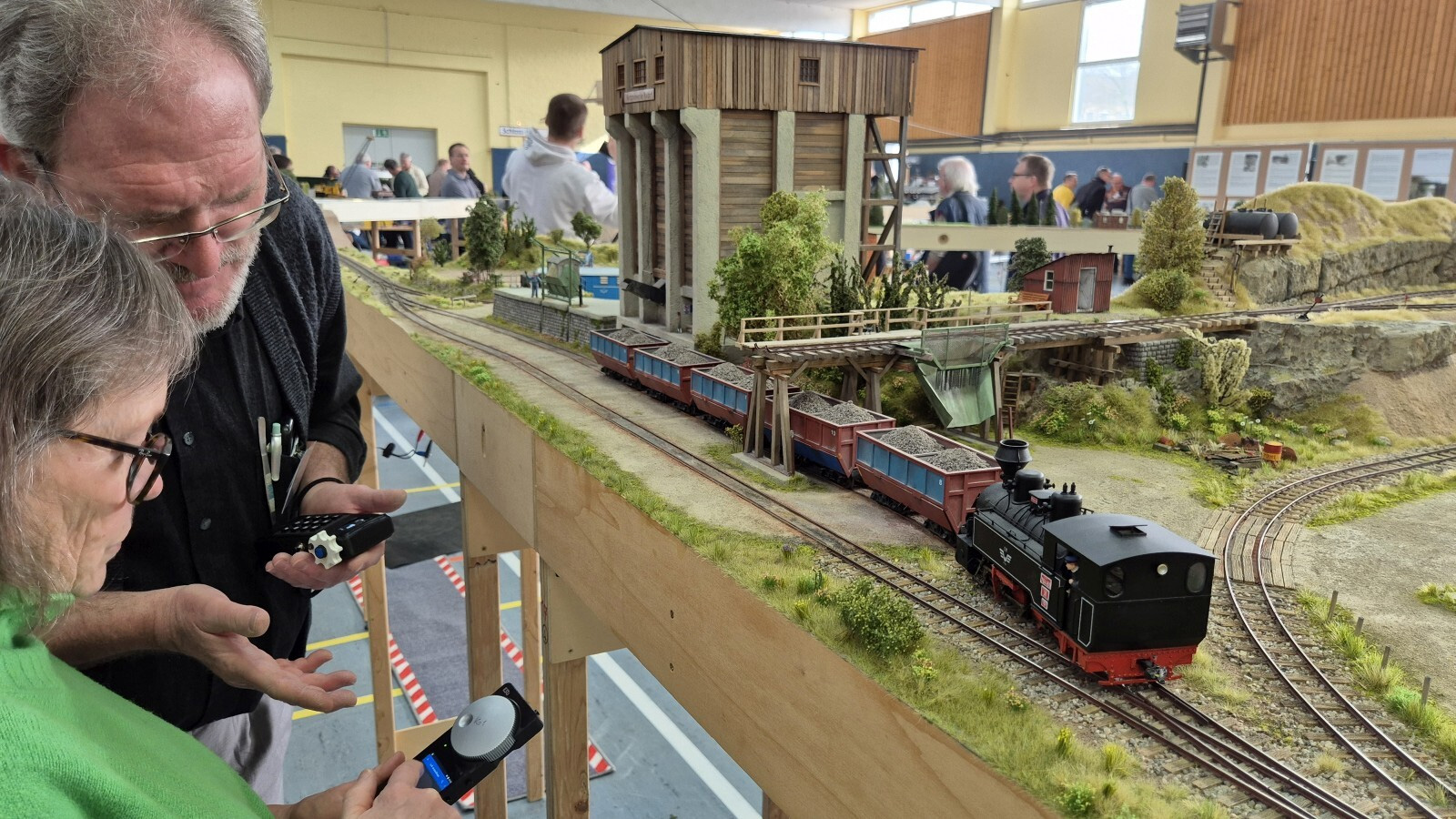 Auf Einladung der Organisatoren um Helmut Walter und seinem Team fanden die zahlreichen Besucher an den beiden Öffnungstagen am vergangenen Wochenende wieder viele Details in der TV-Turnhalle vor. Gern erklärten die Aussteller ihre Projekte, gaben einen Einblick in den Bauprozess und führten selbstverständlich allerlei Funktionen ihrer Anlage vor. So durften die Züge beim Beladen bewundert werden, weitere beim An- oder Abkoppeln oder sogar beim Ziehen am Zugseil einer Seilwinde.