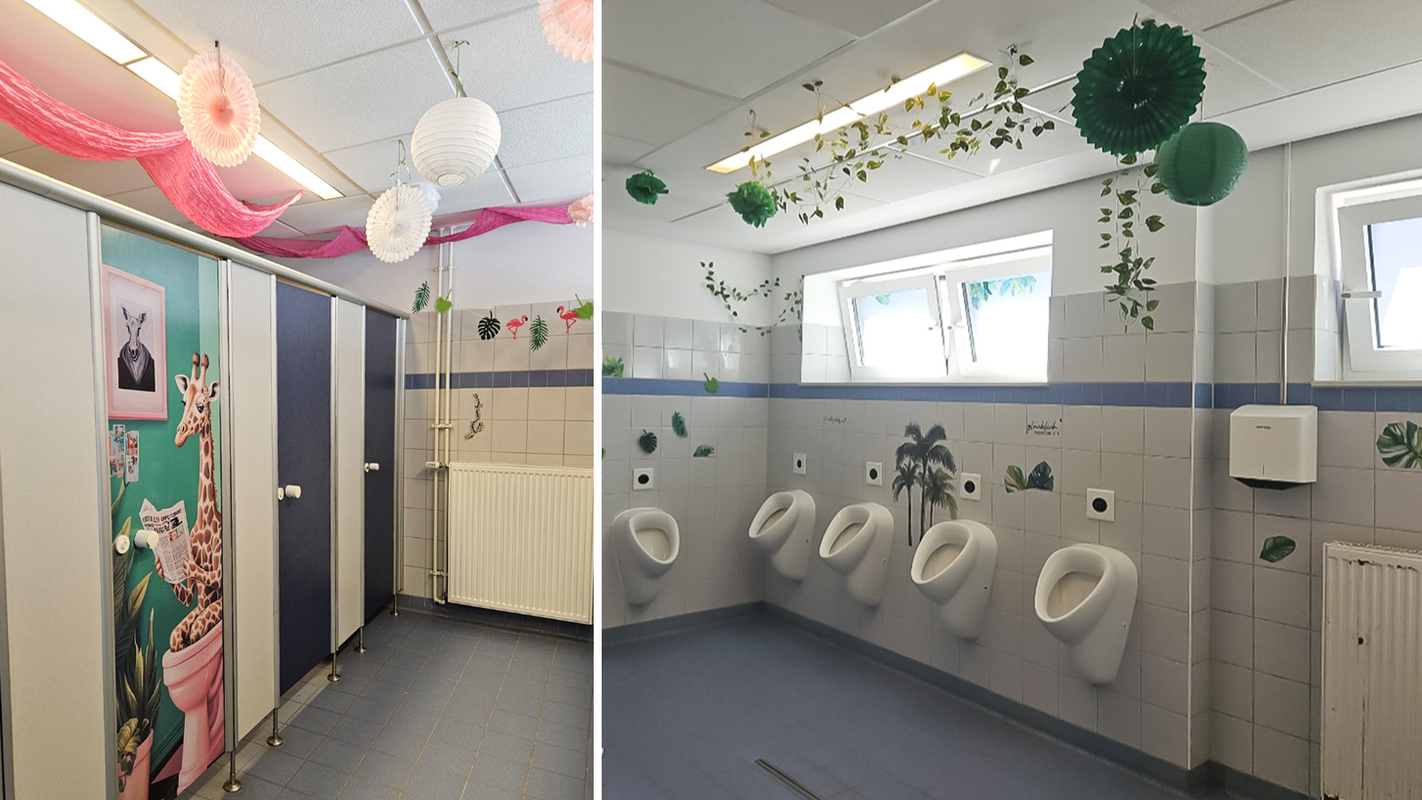 Heute hängen Efeu und bunte Pompons von den Decken, die Fliesen sind mit Fensterbildern von Palmen, Blättern sowie Tieren wie Affen und Giraffen dekoriert. Auch die zuvor fehlenden Spiegel wurden wieder angebracht. Die Resonanz aus der Schülerschaft ist durchweg positiv.