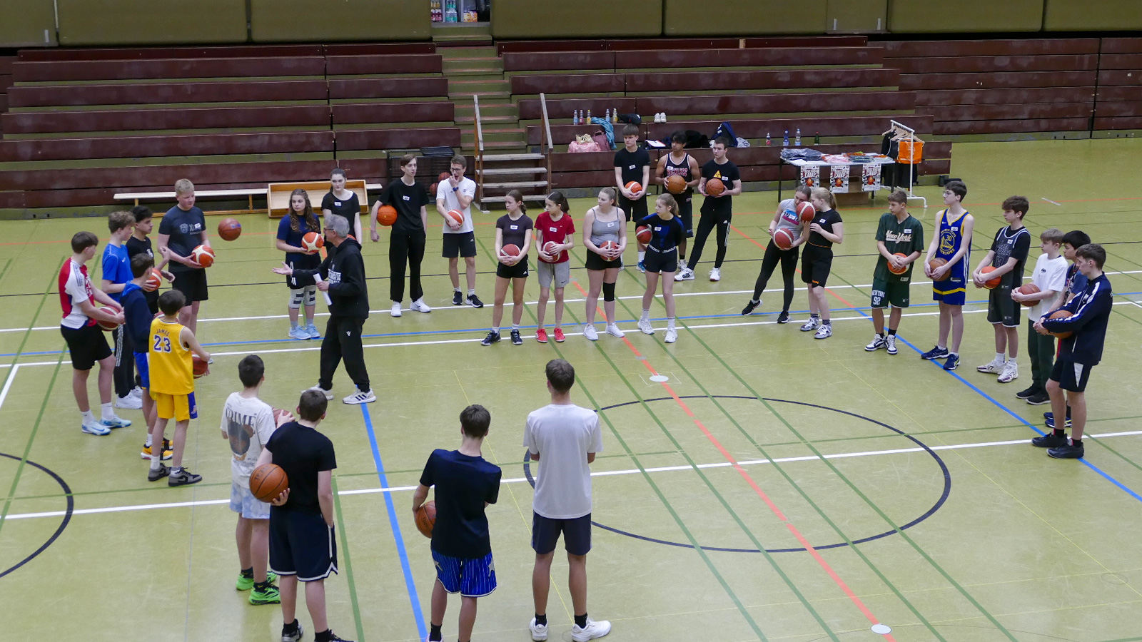 Auch die grundlegenden Aspekte des Basketballsports wurden thematisiert. „Basketball bedeutet Ausdauer, Koordination, Kraft und Geschicklichkeit, aber auch Teamarbeit, Disziplin, Kommunikation und Belastbarkeit“, so Scheele. Grundtechniken könnten schnell erlernt werden, wodurch Anfänger früh Erfolgserlebnisse hätten.