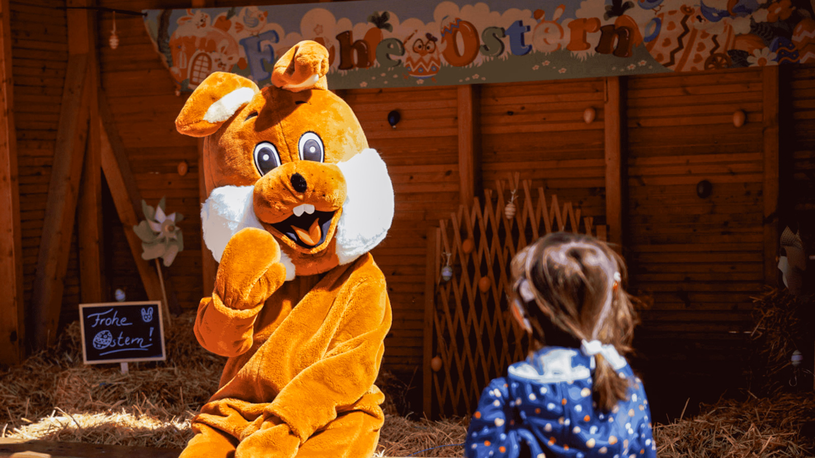 Am Ostersonntag und Ostermontag, jeweils von 11 bis 16 Uhr, verteilt der Osterhase viele bunte Ostereier an die Besucherinnen und Besucher. Dabei kann es schon einmal passieren, dass er ins Schwitzen gerät. Doch einmal im Jahr sorgt er zur Freude von Groß und Klein für ein besonderes Erlebnis.